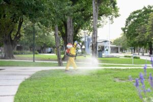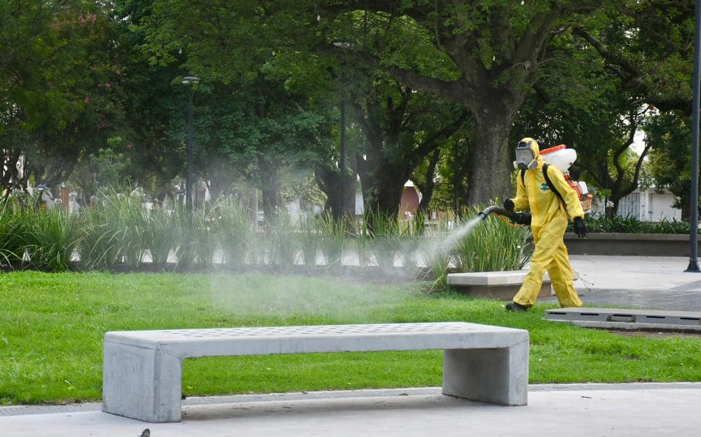 La Municipalidad de Leones comenzó con la fumigación contra mosquitos en todos los espacios públicos y zonas con espejos de agua de la ciudad.