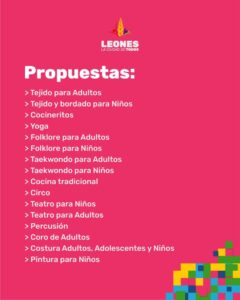 Desde actividades artísticas y culturales hasta deportes y formación, en Leones hay un taller para cada interés.