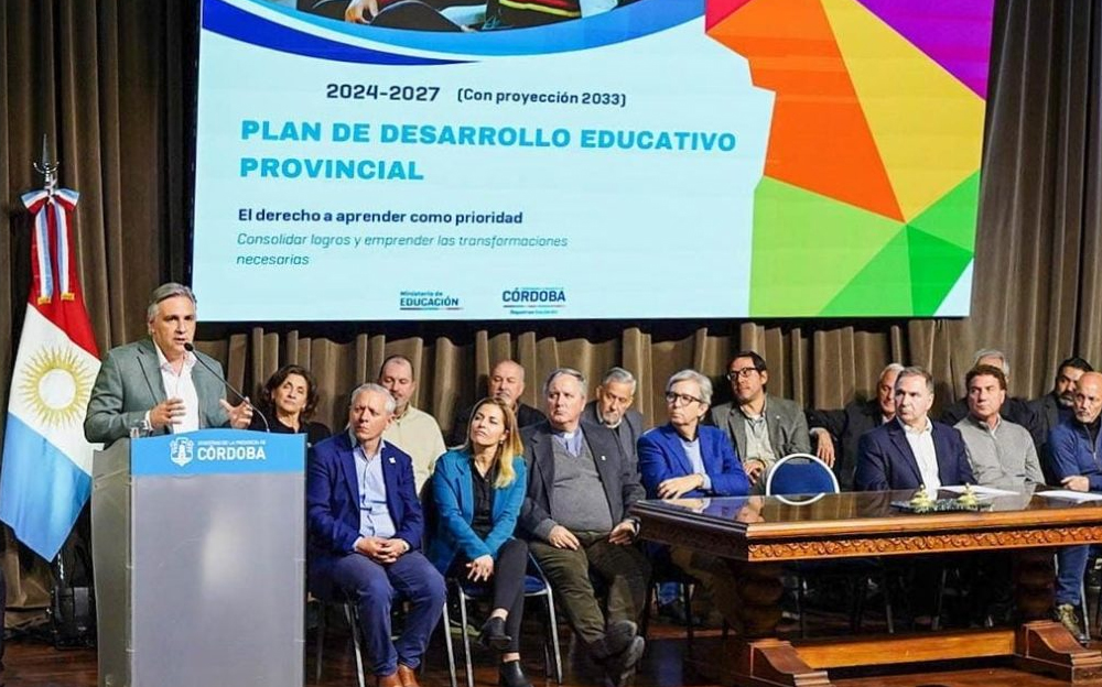 El gobernador Martín Llaryora presentó el Plan de Desarrollo Educativo Provincial 2024-2027 con proyección 2033, bajo la consigna “El derecho a aprender como prioridad. Consolidar logros y emprender las transformaciones necesarias”.