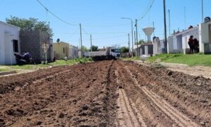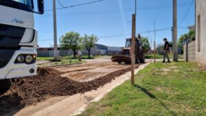 Se están llevando adelante trabajos de reacondicionamiento y nivelación de la calle Héroes de Malvinas en el barrio sur (Juan Ciani)