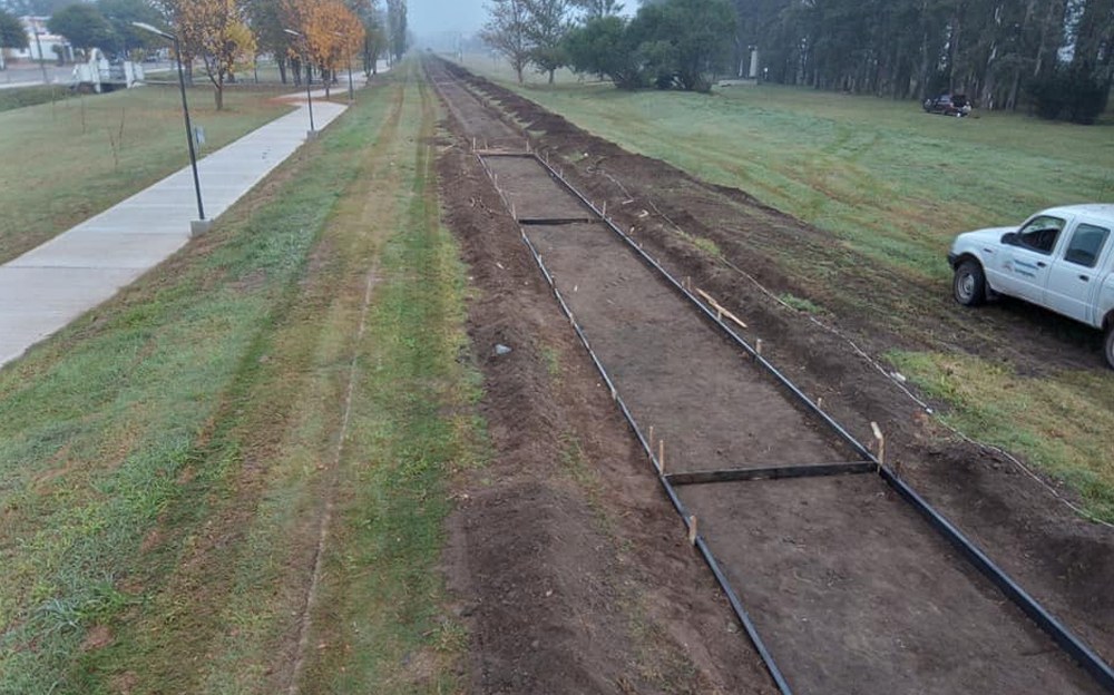 El área de obras públicas de la Municipalidad de Los Surgentes comenzó con el hormigonado de la futura bicisenda.