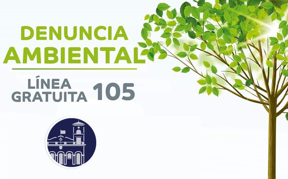 Agendá este número telefónico gratuito: 105 como: DENUNCIA AMBIENTAL y no dudes en llamarnos si advertis algunas de las situaciones que explicamos en la placa. Entre todos…podemos cuidar de nuestra comunidad