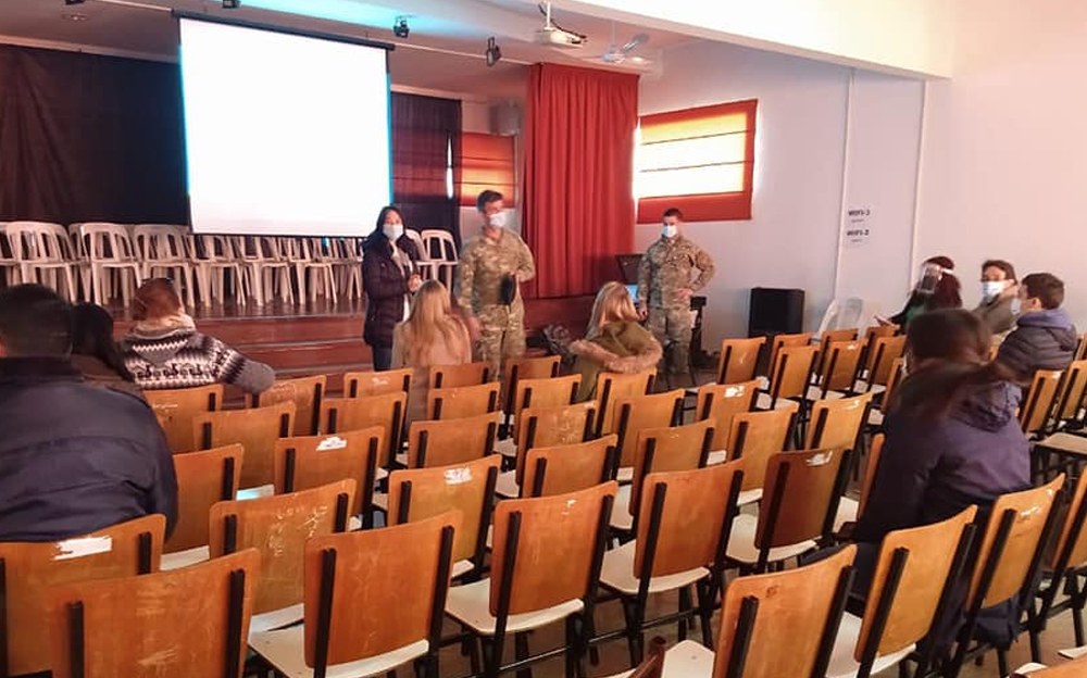 “Nos encontramos muy contentos y agradecidos con la presencia de especialistas cuya función principal es la de AMPLIAR Y REFORZAR el trabajo que se viene realizando en nuestro pueblo desde que comenzaron a registrarse los primeros casos COVID POSITIVOS, entre ellos el Mayor Javier Camino, y el Teniente de Fragata Álvaro Zerdan, de la Escuela de Tropas Aerotransportadas y Operaciones Especiales del Ejército Argentino.