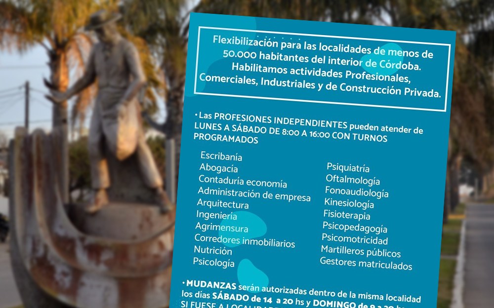 La Municipalidad de Los Surgentes difundió la nueva normativa que flexibiliza nuevas actividades laborales.