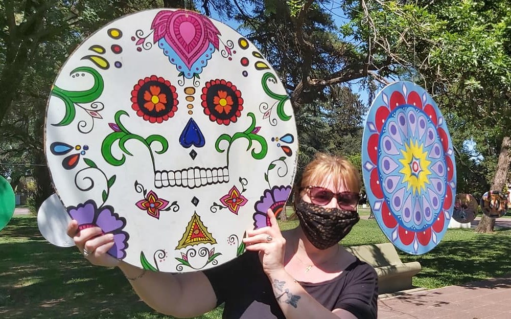Se realizó en la plaza central de Los Surgentes la exhibición de la Muestra Itinerante de mandalas “Forma y Color” con diseños que vienen rodando de distintas localidades de la Provincia de Santa Fe y Córdoba.