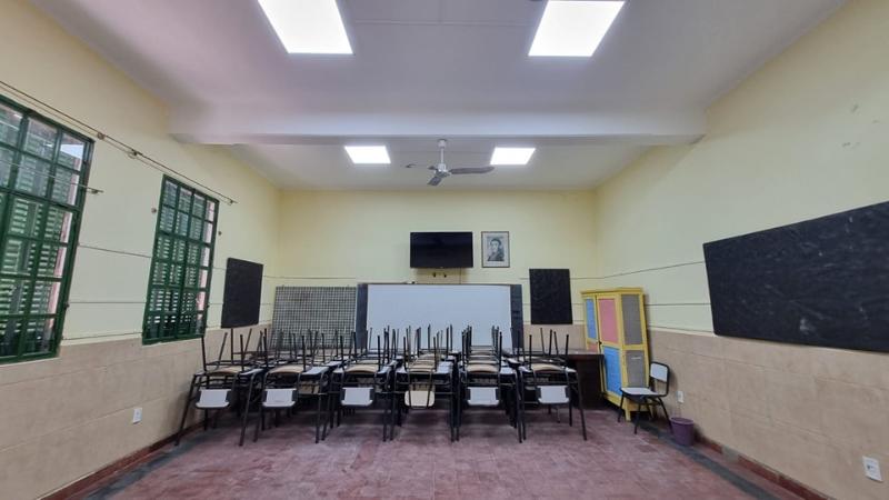 - Se completó la iluminación de las cuatro aulas centrales con 6 plafones led de 60 x 60 cm y 40 watts de potencia cada uno.