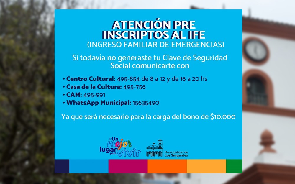 Importantes recomendaciones de Municipalidad de Los Surgentes para beneficiarias del Ingreso Familiar de Emergencia.