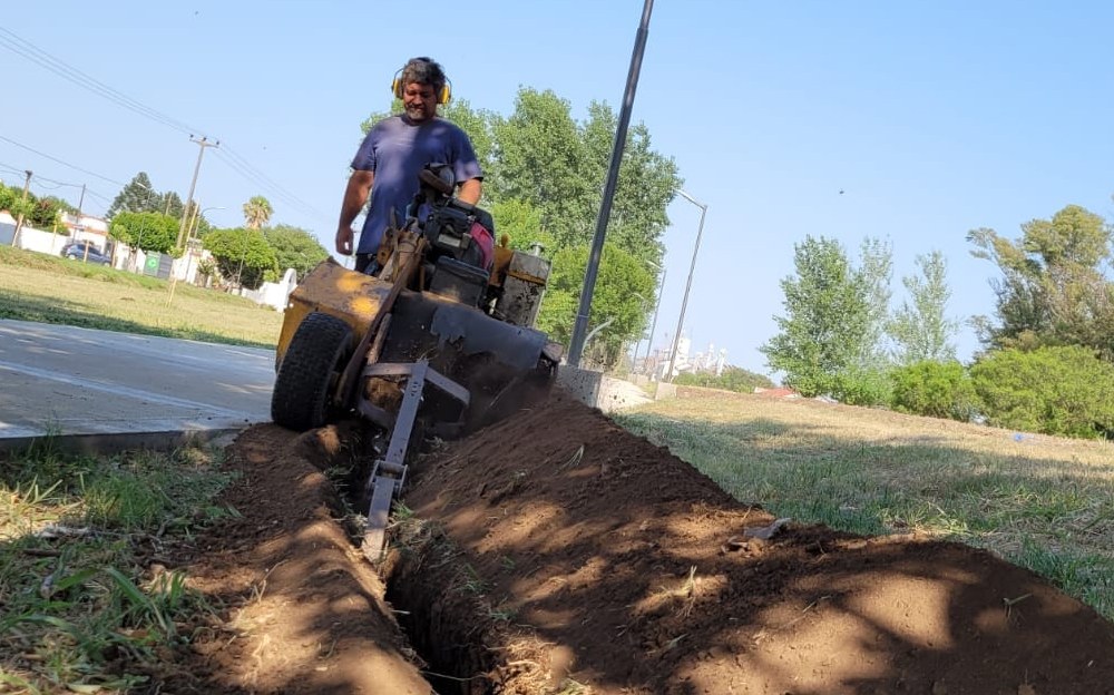 El área de Obras Públicas municipal realiza trabajos de Zanjeo Y Cableado De La Nueva Sendas Peatonales.
