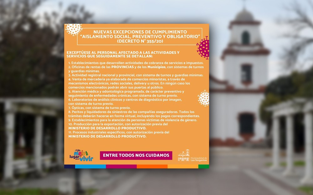 La Municipalidad de Los Surgentes dio a conocer el listado de actividades y servicios que rigen a partir de hoy.