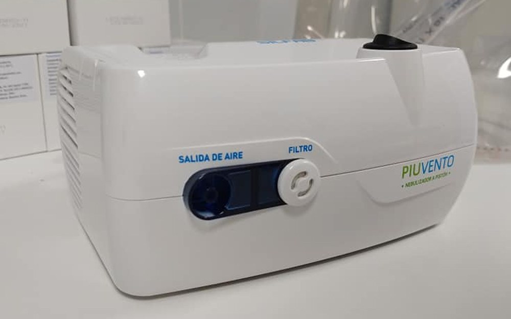 un nebulizador, casco y ampollas de Ibuprofeno inhalatorio