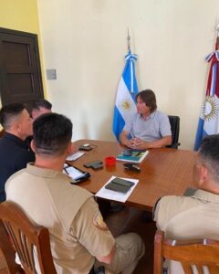 El Intendente Gabriel Pellizzon, recibió al Director General de Policía Caminera Comisario Ivan Alejandro Rey, y al Subdirector de Departamentales Norte Comisario Ariel Vargas.