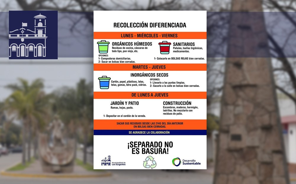 La municipalidad de Los Surgentes informa que la recolección de residuos tendrá un carácter diferencial durante el próximo fin de semana largo.