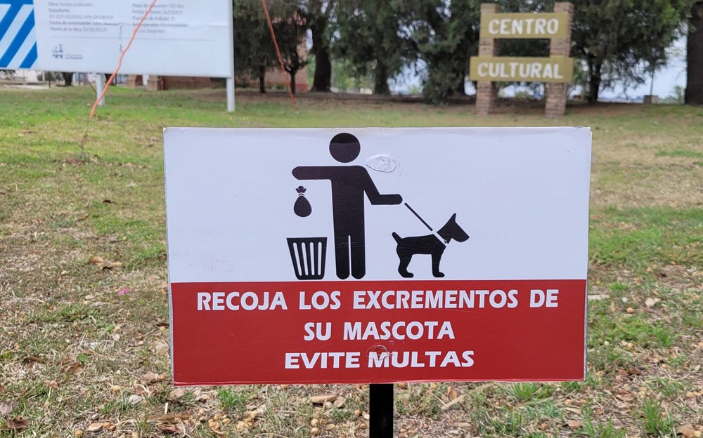 La Municipalidad de Los Surgentes colocó varios carteles con la leyenda “RECOJA LOS EXCREMENTOS DE SUS MASCOTAS, EVITE MULTAS” en distintos espacios verdes de la localidad.