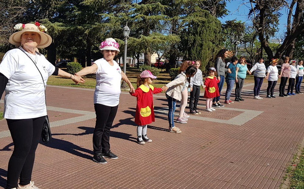“La ExpoJardín junto a todos los niños, padres y docentes de sus salitas con una muestra fantástica; los Talleres del Centro Cultural con las artesanías más lindas, y el abrazo mundial organizado por las alumnas de la Universidad Popular del Curso de Cuidador de Adultos Mayores.”