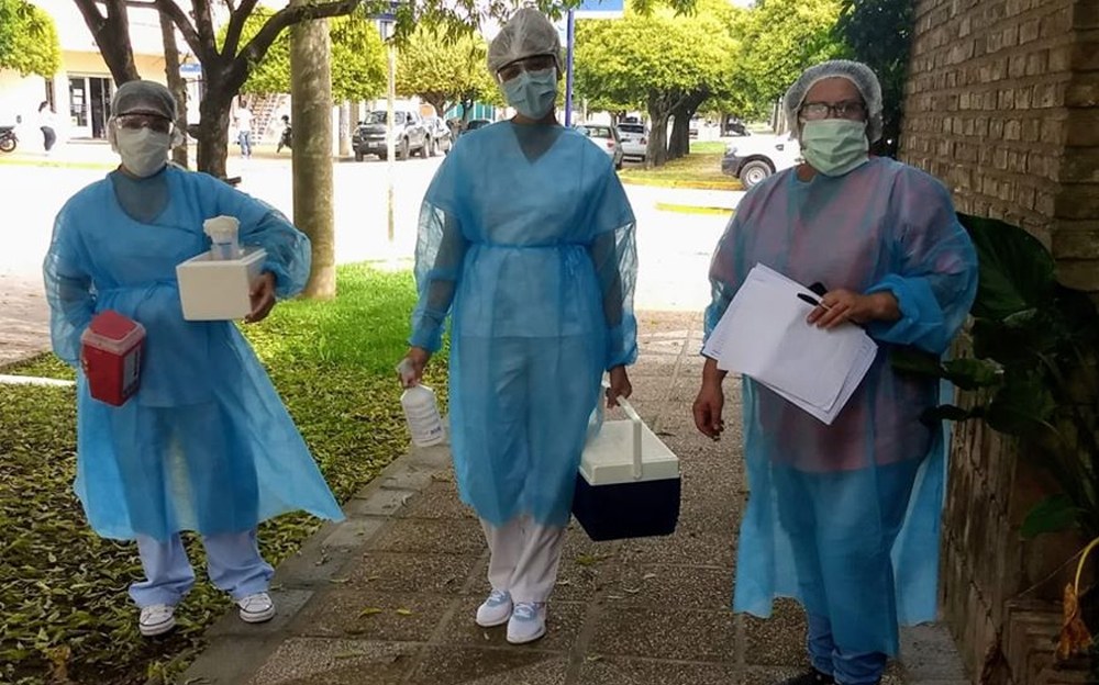 El equipo de Enfermeras del Vacunatorio que integra el Centro Materno Infantil de Los Surgentes en forma conjunta con el Hospital Municipal están visitando los hogares de Adultos Mayores (pacientes de riesgo) para colocarle la vacuna ANTIGRIPAL.