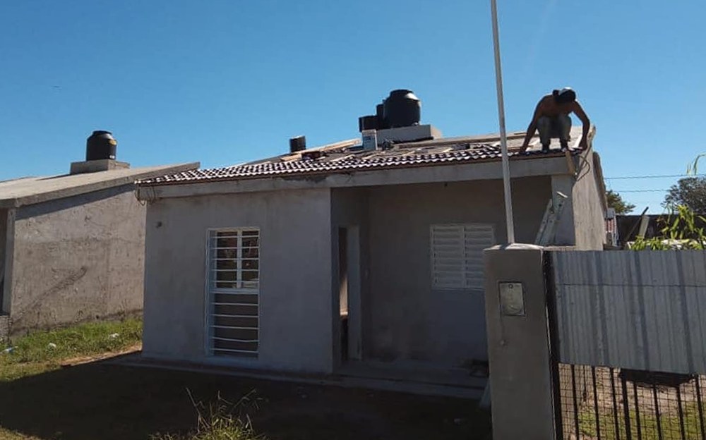 “Les contamos los avances en la construcción de las viviendas sociales; estamos colocando el techo de tejas negras, las cuales son de plástico reciclado, livianas, fáciles de colocar, aislantes, más económicas y sobre todo, amigables con el planeta. Se colocan sobre una estructura de madera, siendo livianas y fáciles de reponer ante posibles roturas.”