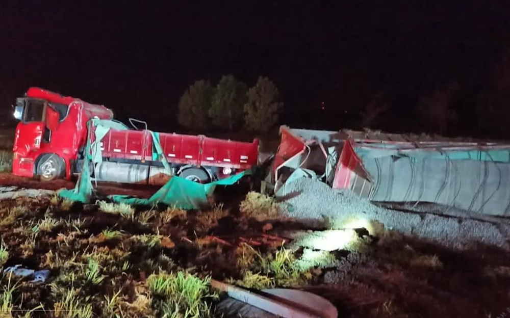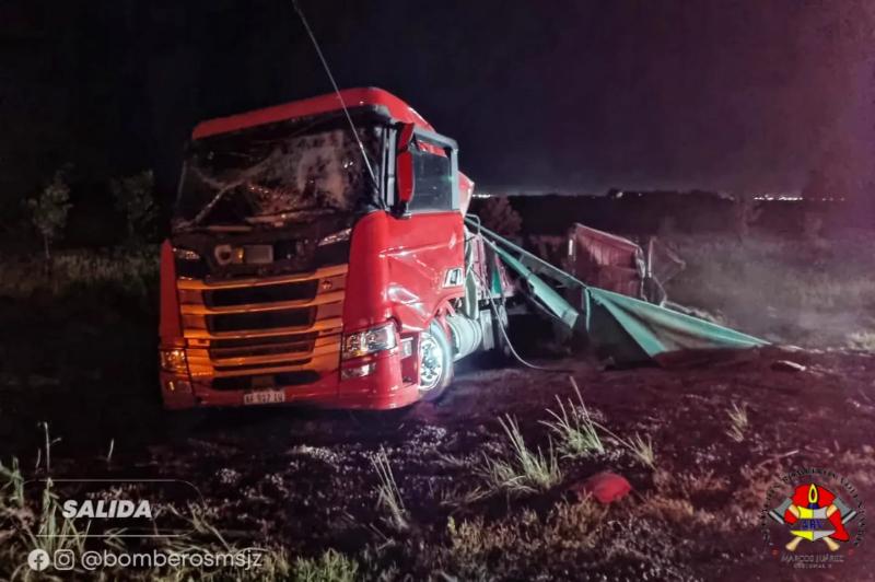 A las 3:40 horas, Bomberos Voluntarios de Marcos Juárez acudieron al kilómetro 431 de la Autopista por un vuelco en solitario de un camión.