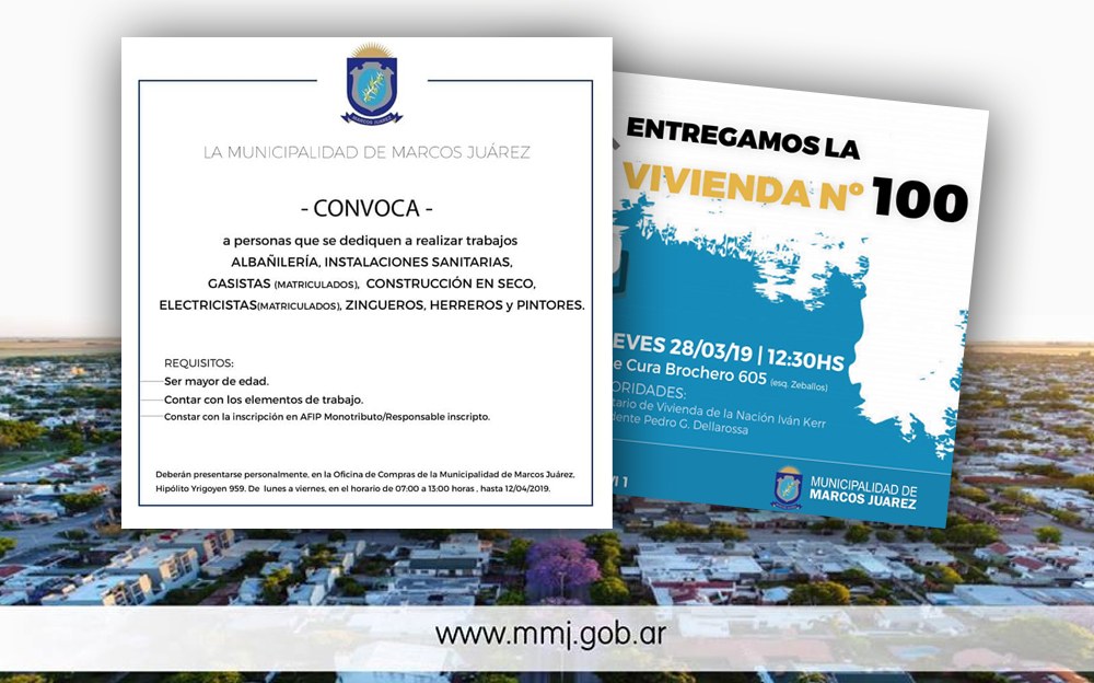 La municipalidad de Marcos Juárez realizó algunas convocatorias a través de su cuenta oficial de facebook.