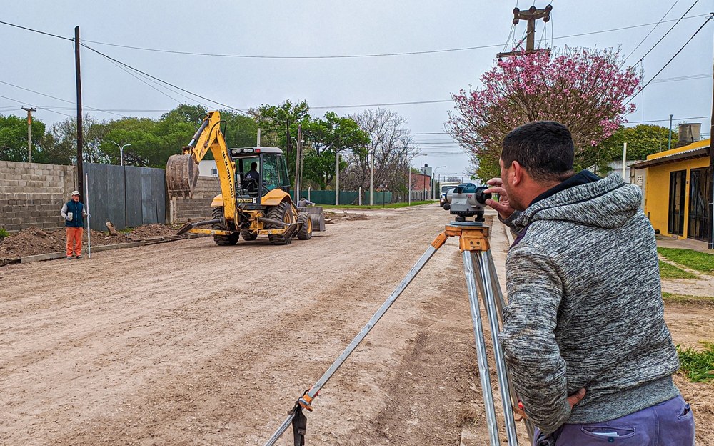 El área de Obras Públicas de la Municipalidad de Marcos Juárez avanza con la obra de cordón cuneta en el barrio Villa Argentina.