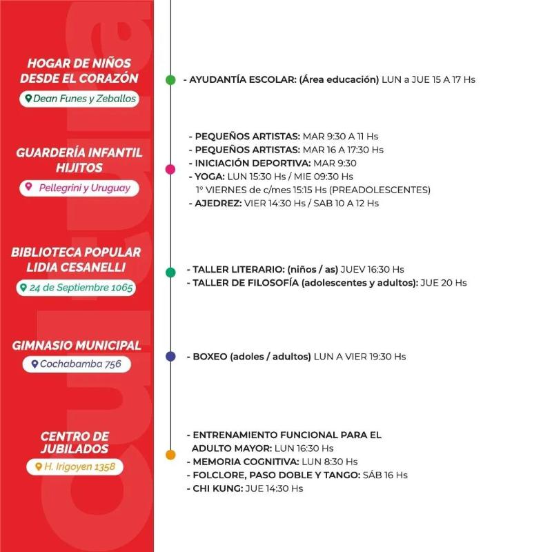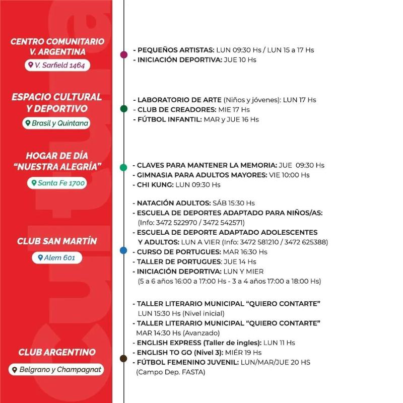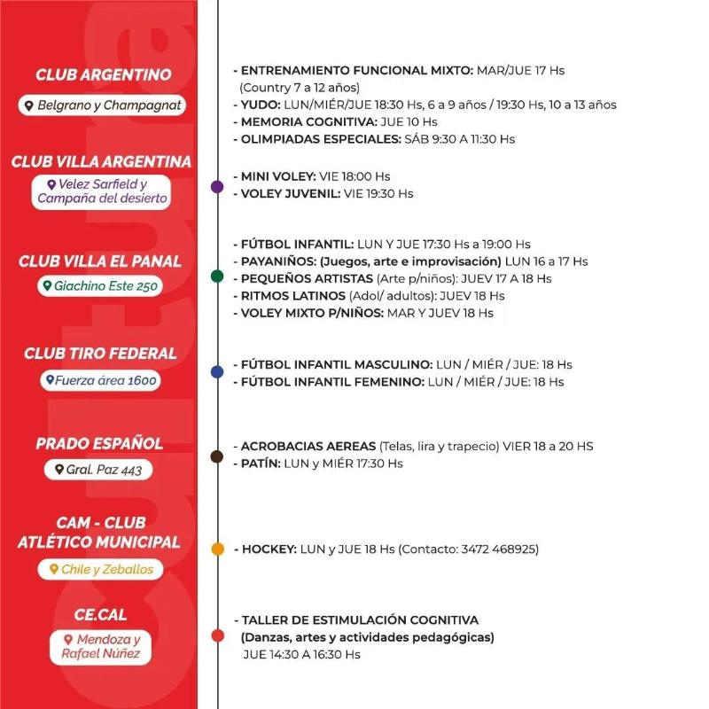 Mirá la grilla de propuestas deportivas, culturales, artísticas y creativas.