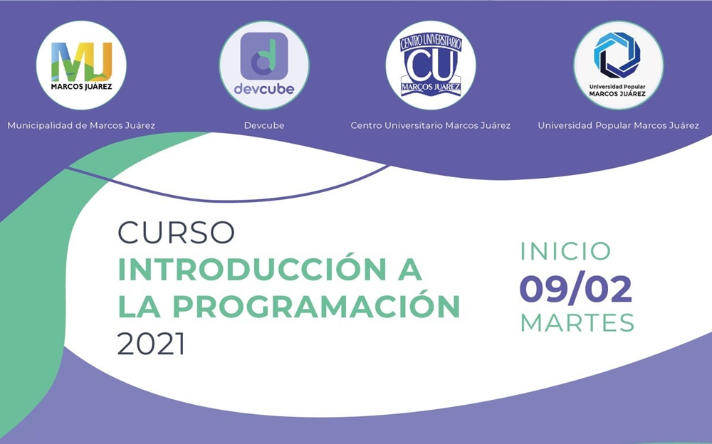La Universidad Popular Marcos Juárez, en conjunto con DevCube y el Centro Universitario Marcos Juarez lanzan el Curso de Introducción a la Programación 2021.
