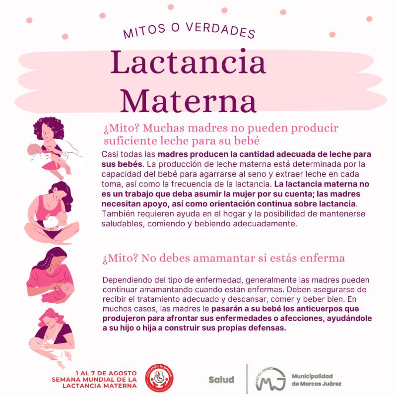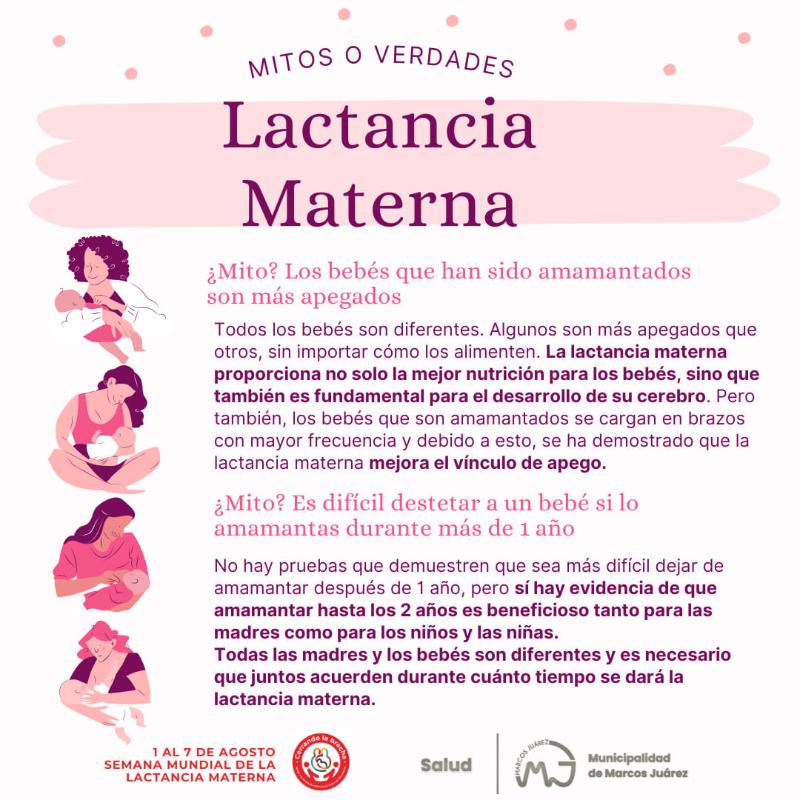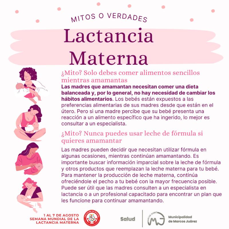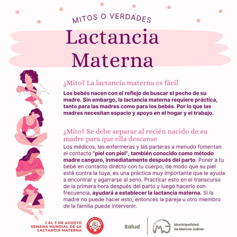 Desde el área de Salud de la Municipalidad de Marcos Juárez se realizó una campaña de difusión para pensar algunos mitos y verdades que circulan en relación a la lactancia materna.
