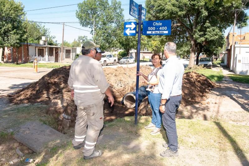 Durante su recorrido, la mandataria municipal también se acercó a la obra del canal de desagüe en Quintana y Chile para supervisar el progreso de los trabajos.