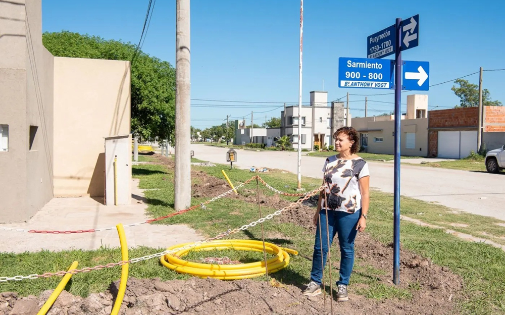 La Intendente, Sara Majorel, visitó las obras de gas que la municipalidad lleva a cabo en el barrio Anthony Vogt, al sur de la ciudad.