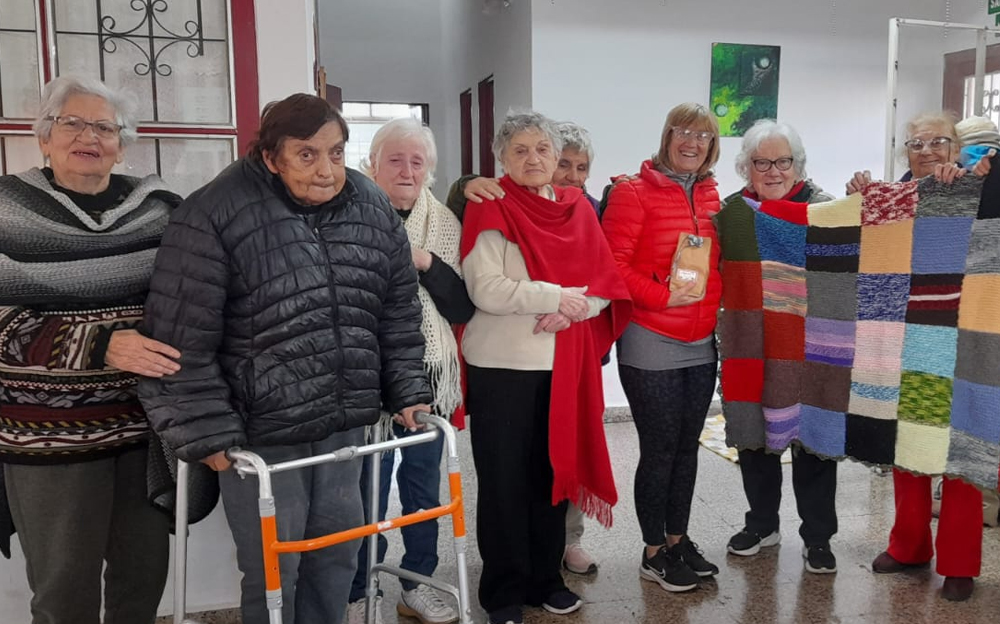 En el marco del proyecto institucional “Manos que Acarician”, el pasado viernes un grupo de mujeres del Hogar de Día Municipal “Nuestra alegría ” entregó una manta tejida a mano a Cristina Borri, miembro de la comisión del Hogar de Niños “Desde el Corazón” .