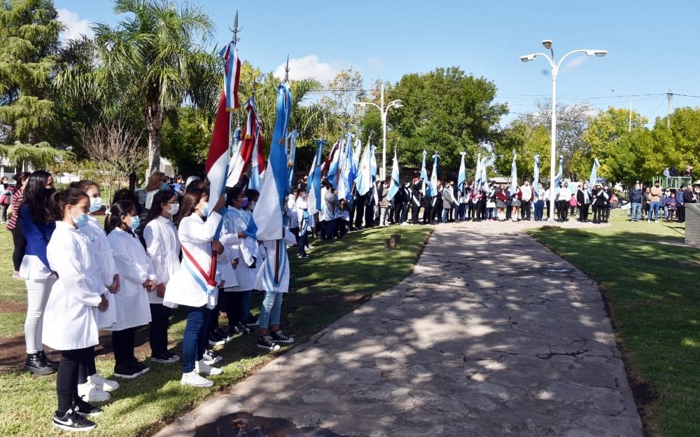 El acto oficial contó con la participación de todas las instituciones de la ciudad, el ensamble de profesores de la Banda Municipal J. Cesanelli y a la artista Silvia Torres.