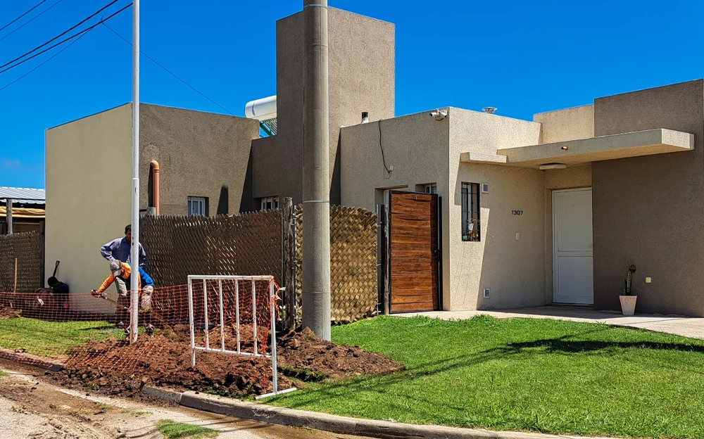 El desarrollo de los trabajos contó con el aporte del gobierno provincial y que la municipalidad de Marcos Juárez llegó a un acuerdo con las tarjetas de crédito locales para ofrecer financiamiento privado para la red domiciliaria.