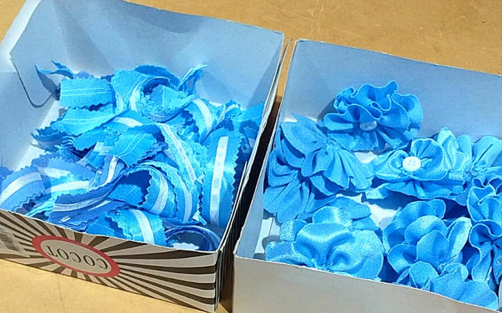 Las alumnas del Taller de Corte y Confección realizaron escarapelas para entregar en el acto protocolar: