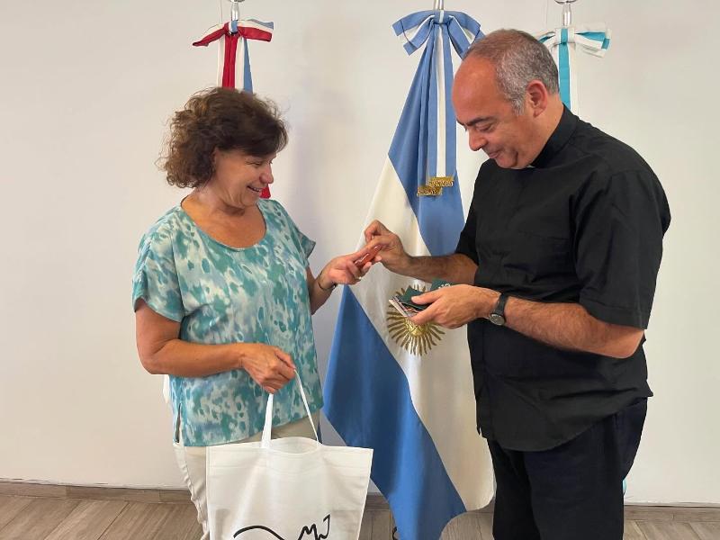 La intendenta Sara Majorel recibió a Monseñor Guillermo Karcher, jefe de Protocolo y Ceremonial de tres papas: Juan Pablo II, Benedicto XVI y Francisco. A su vez, es hijo de la ciudad de Marcos Juárez.