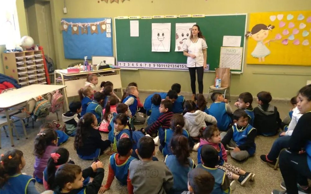 La odontóloga Romina Buhlmann, del Centro Periférico de Salud municipal N° 2, visitó el Jardín de Infantes General San Martín.