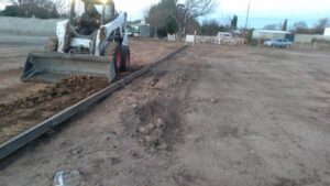 Equipos de trabajo de la Municipalidad de Marcos Juárez están realizando la platea para colocar la planta productora de asfalto en la Plataforma de Servicios N2, ubicada en Villa Argentina.