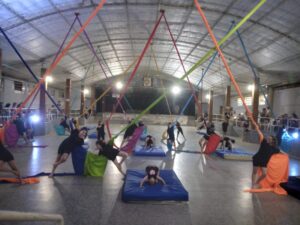 Además celebró un intenso año de trabajo el Taller de Acrobacias Aéreas (telas, lira y trapecio), que funciona en el Prado Español y está a cargo de las profesoras Laura Pronzati y Nanus Bregant.