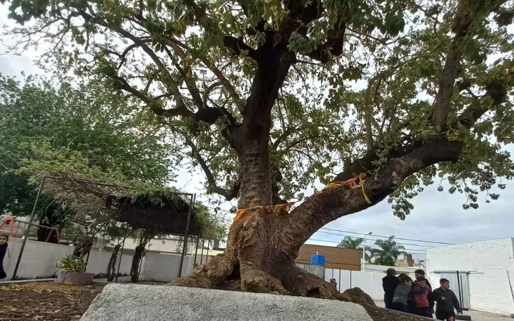 El ombú centenario de la Escuela Bernardino Rivadavia, fue declarado árbol histórico de la ciudad.