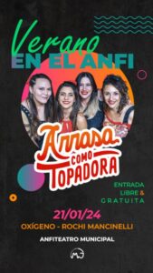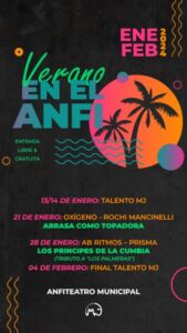 La Secretaría de Cultura y Deportes de la Municipalidad de Marcos Juárez informa que el próximo 14 y 15 de enero, en el Anfiteatro Municipal, comenzará el ciclo de “Verano en el Anfi”.
