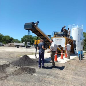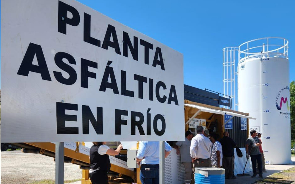 En horas del mediodía se puso en marcha la primera producción de emulsión para realizar el asfaltado del playón donde se instalará definitivamente la Planta Asfáltica.