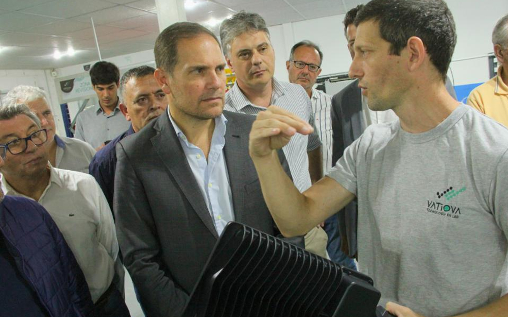 Posteriormente, el ministro visitó la sede de Vatiova, emprendimiento de la Cooperativa Eléctrica que produce artefactos led con trazabilidad y garantías que facilitan a municipios y privados el desarrollo de infraestructuras urbanas, sociales y deportivas, entre otras.