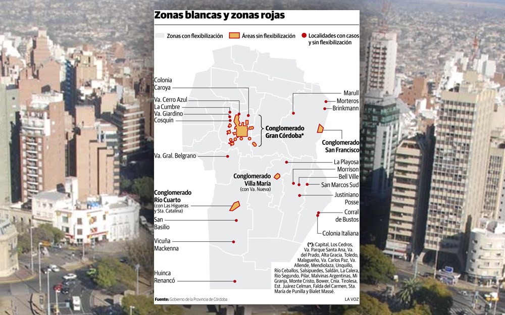 Además, se configura un criterio para «Zona Roja» en función de nexo geográfico, laboral, sanitario y/o comercial: área blanca con nexo o criterio geográfico, laboral, sanitario y/o comercial (determinado por epidemiologia por vulnerabilidad).