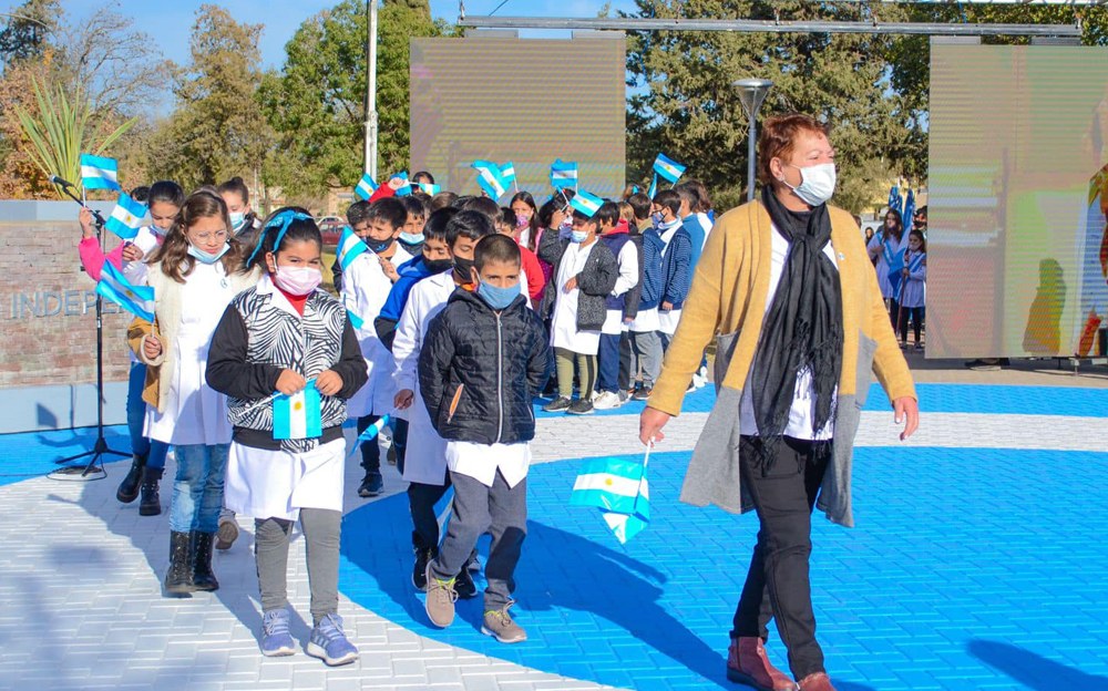 En plaza Manuel Belgrano, 425 niños y niñas de todas las escuelas primarias de Leones prometieron lealtad a la Bandera Nacional.