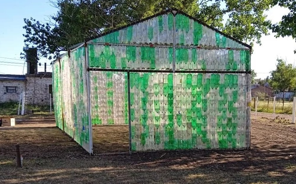 Los empleados de la Planta de Reciclado Municipal realizaron un vivero con botellas reciclables.