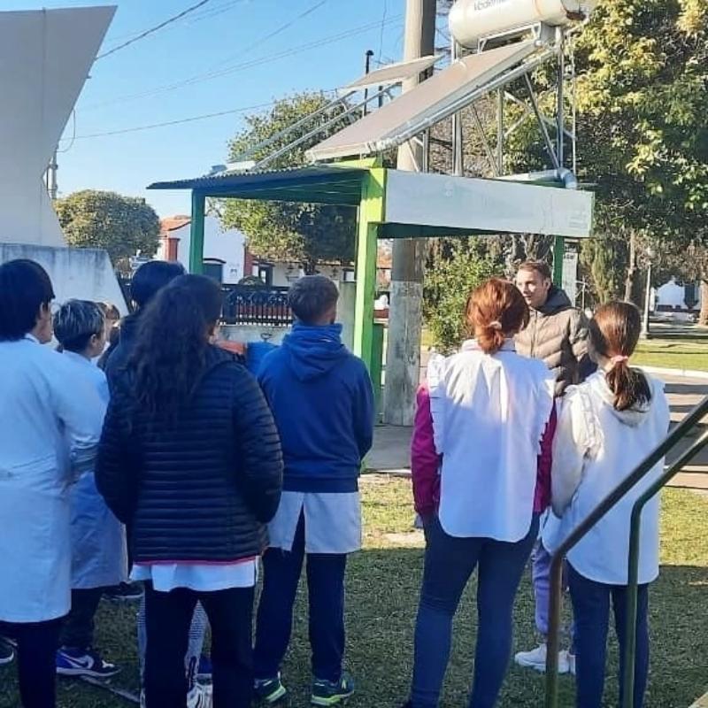 Alumnos de 6to grado de la Escuela General San Martín, acompañados por integrantes de la Dirección de Ambiente visitaron los diferentes puntos donde se encuentran los termos y paneles solares.