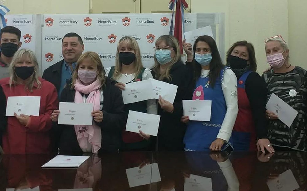 El Intendente Edwin Riva hizo entrega a las instituciones de Monte Buey del porcentaje de ganancias por la venta de los cartones del Bingo de la 8° Fiesta Tradicional de Comidas al Disco.