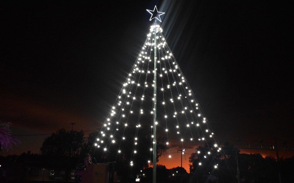 “La Municipalidad de Monte Buey quiere estar acompañando y transmitiendo el sentir de la Navidad y todo lo simbólico que tiene para muchas personas el pesebre, el Árbol y la música.” manifestó el Intendente Edwin Riva y a continuación, activó el encendido del árbol navideño.