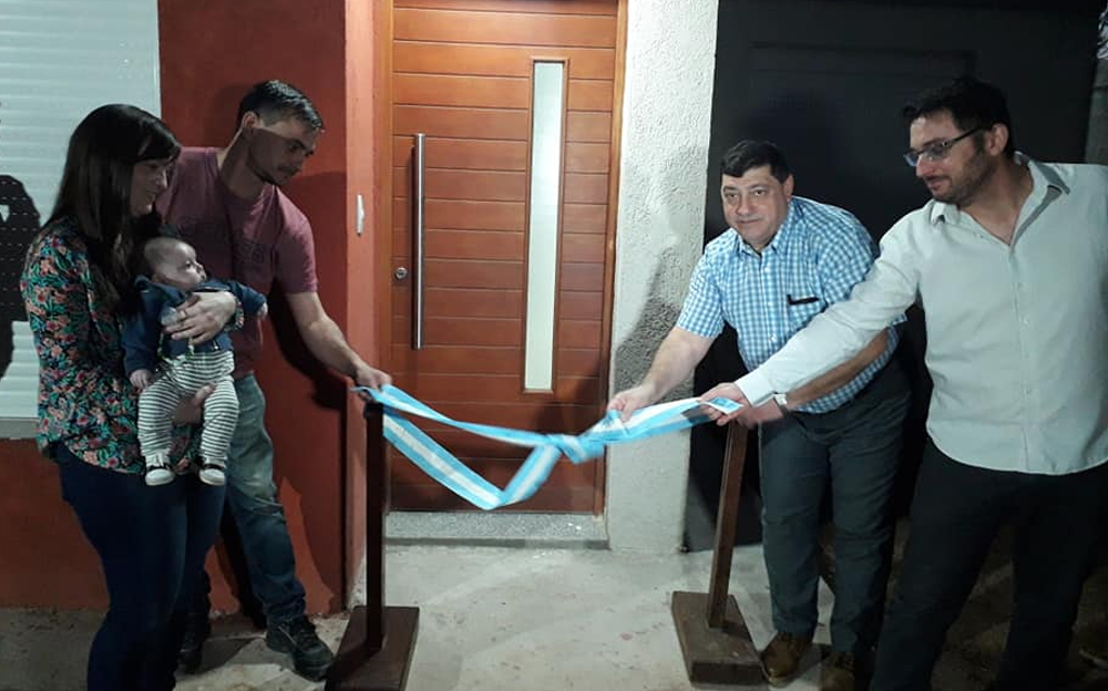 El intendente municipal, Esc. Edwin Riva, hizo entrega de una nueva unidad habitacional, del Plan Monte Buey Mi Casa II, a Leonardo Francioni.