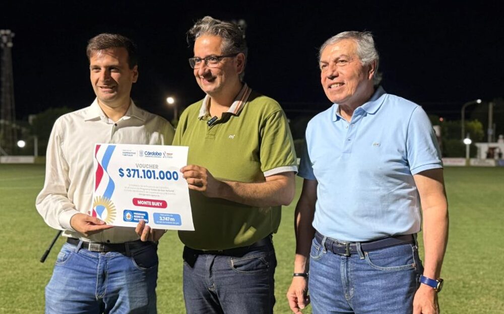 En la localidad de Monte Buey, el ministro de Cooperativas y Mutuales, Gustavo Brandán, junto al intendente Mariano Calamante, encabezó la entrega de 371,1 millones de pesos para redes de gas natural que beneficiarán a más de 700 vecinos.