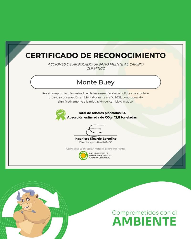 El reconocimiento de la Red Argentina de Municipios frente al Cambio Climático llega por las acciones desarrolladas durante el año que pasó.
