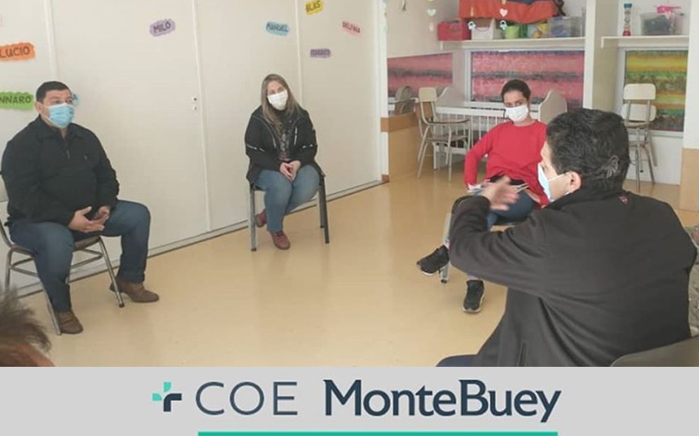 Estuvieron presentes el Intendente Municipal y Coordinador del COE Monte Buey, Esc. Edwin Riva, el director del Hospital Italiano, Dr. Jorge Luna y el equipo médico asesor del COE Local (Dr. Agon y Dra. Carreño).